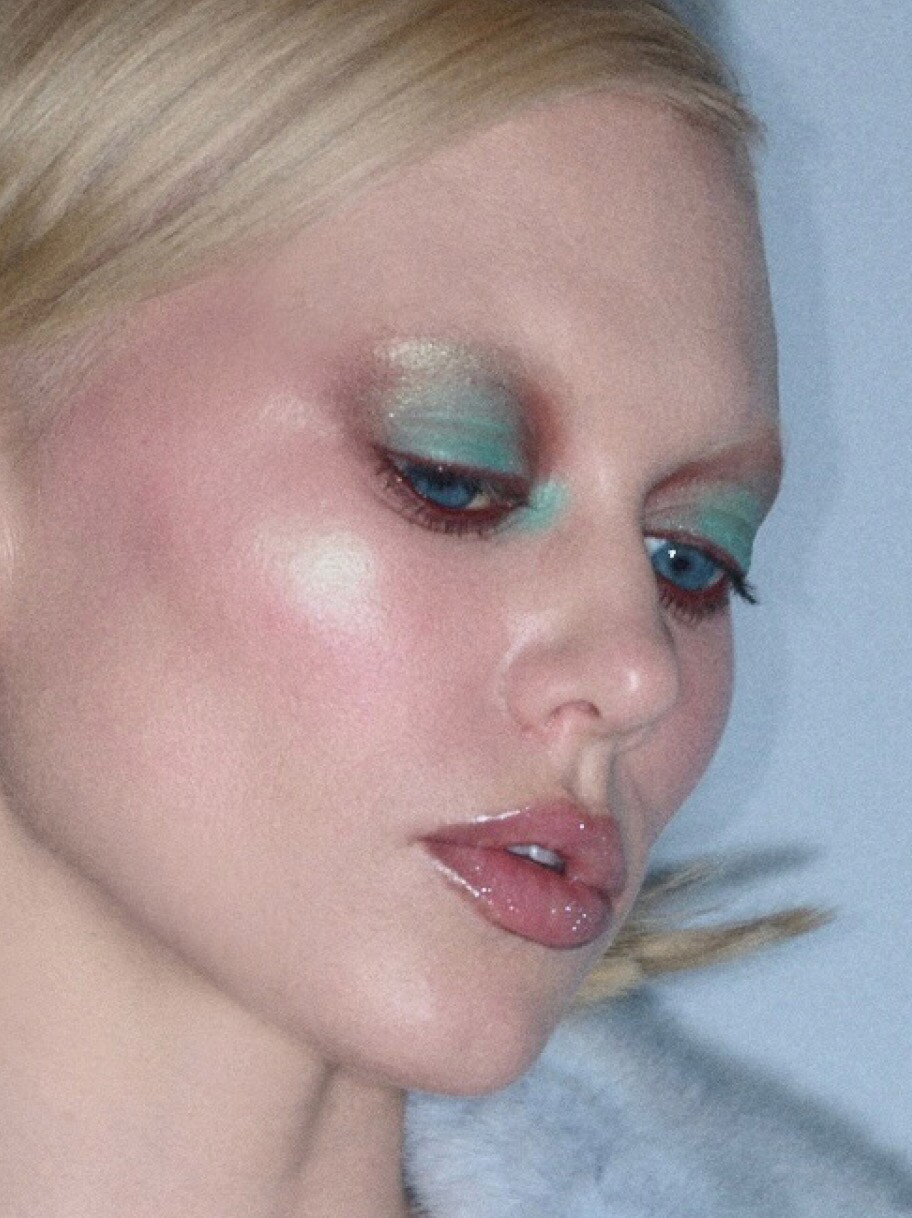 Comienza con el Bounce and Gleam Highlighter en InvestMint, exclusivo de Holiday. “Cuando vi el iluminador menta pensé: jamás había visto algo así”. Es fresco, inesperado y lleno de sabor. En los ojos, el protagonista es el Eye Shadow en New Crop también edición Holiday, contrastado con la intensidad de los tonos mocha mousse como el Eye Shadow en Espresso. “Me encantó la idea de una forma de ojo extraña, favorecedora y cool al mismo tiempo”.